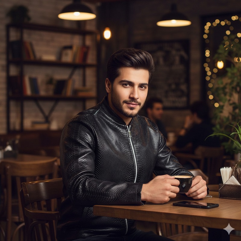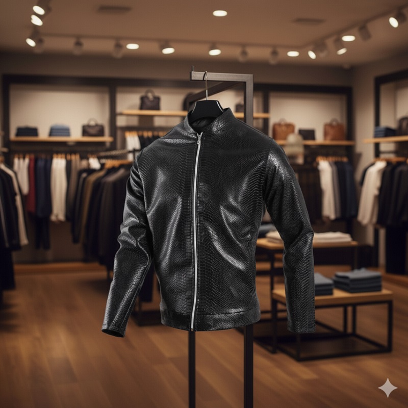 کاپشن چرم طرح پوست مار ساده مردانه مدل Yasan